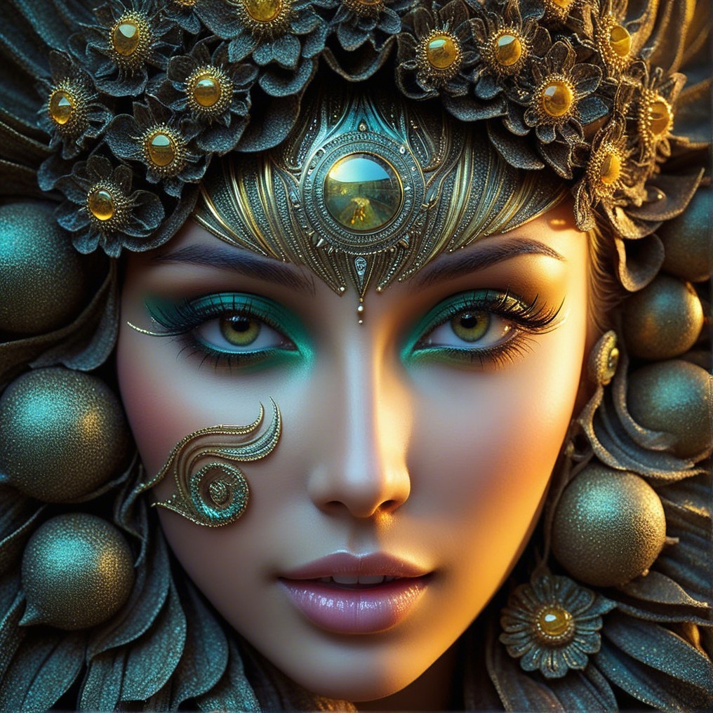Two elegant herons stand by a tranquil river at sunset, surrounded by vibrant flowers and lush greenery. The warm colors of the sky reflect beautifully on the water, creating a serene scene.