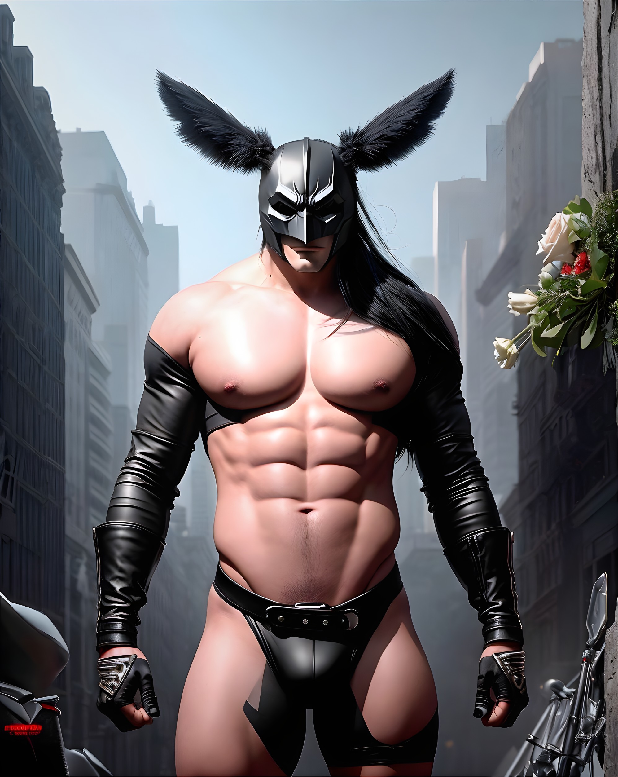 For his special powers, the Rubber Rabbit needs no fancy utility belt, no lasso of truth, no invisible jet, no special ring, no Gamma ray radiation, no spidey senses.... all he needs is leather, rubber, latex gear and will whip villains into submission.