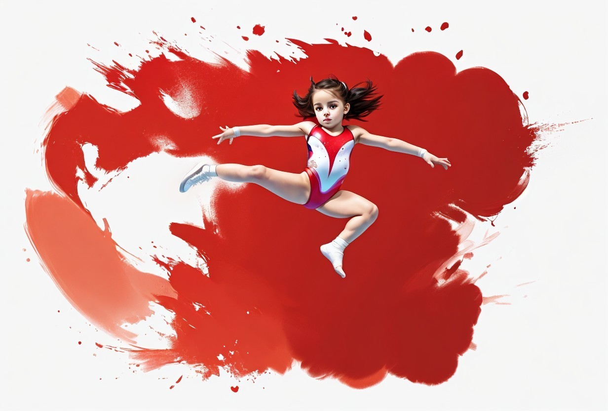 Dynamic Gymnast Mid-Air Leap with Red Background