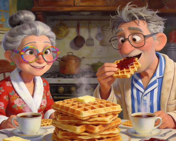 A couple sits closely on a pink bench surrounded by blooming cherry blossoms. The woman wears a delicate pink dress, while the man is casually dressed. A basket of flowers rests nearby.