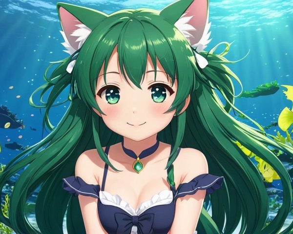A charming anime girl showcases a playful chicken-kiev-themed swimsuit, featuring vibrant colors and fun patterns. Her cheerful expression and lively pose add to the whimsical charm of the design.