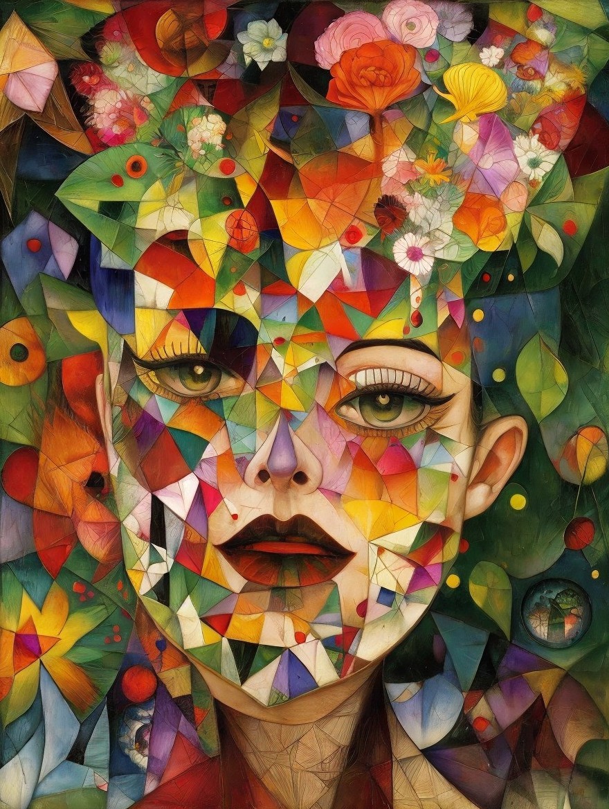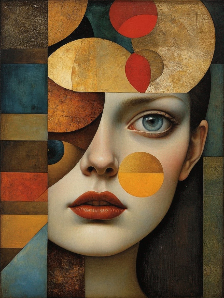 A woman with long red hair and a serene expression holds a glowing orb, with two moons in the background.