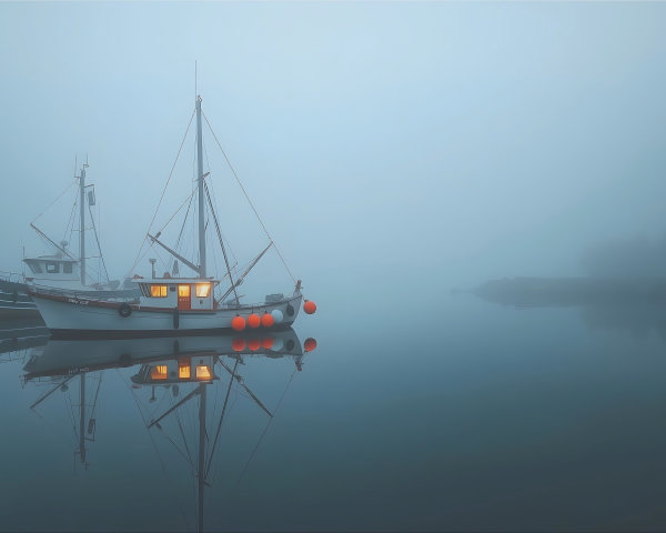 A vibrant, stylized landscape featuring two colorful trees with dotted foliage on either side. In the background, rolling hills and quaint houses with peaked roofs create a serene village scene.
