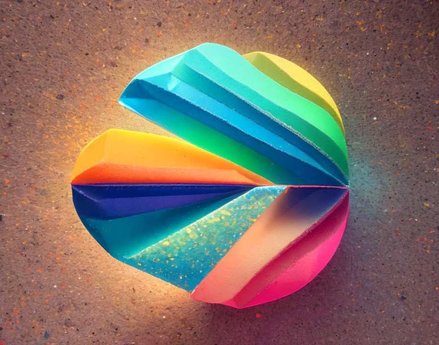 A vividly colored fractal artwork with intricate patterns and a spherical, layered design resembling a gemstone or a portal.