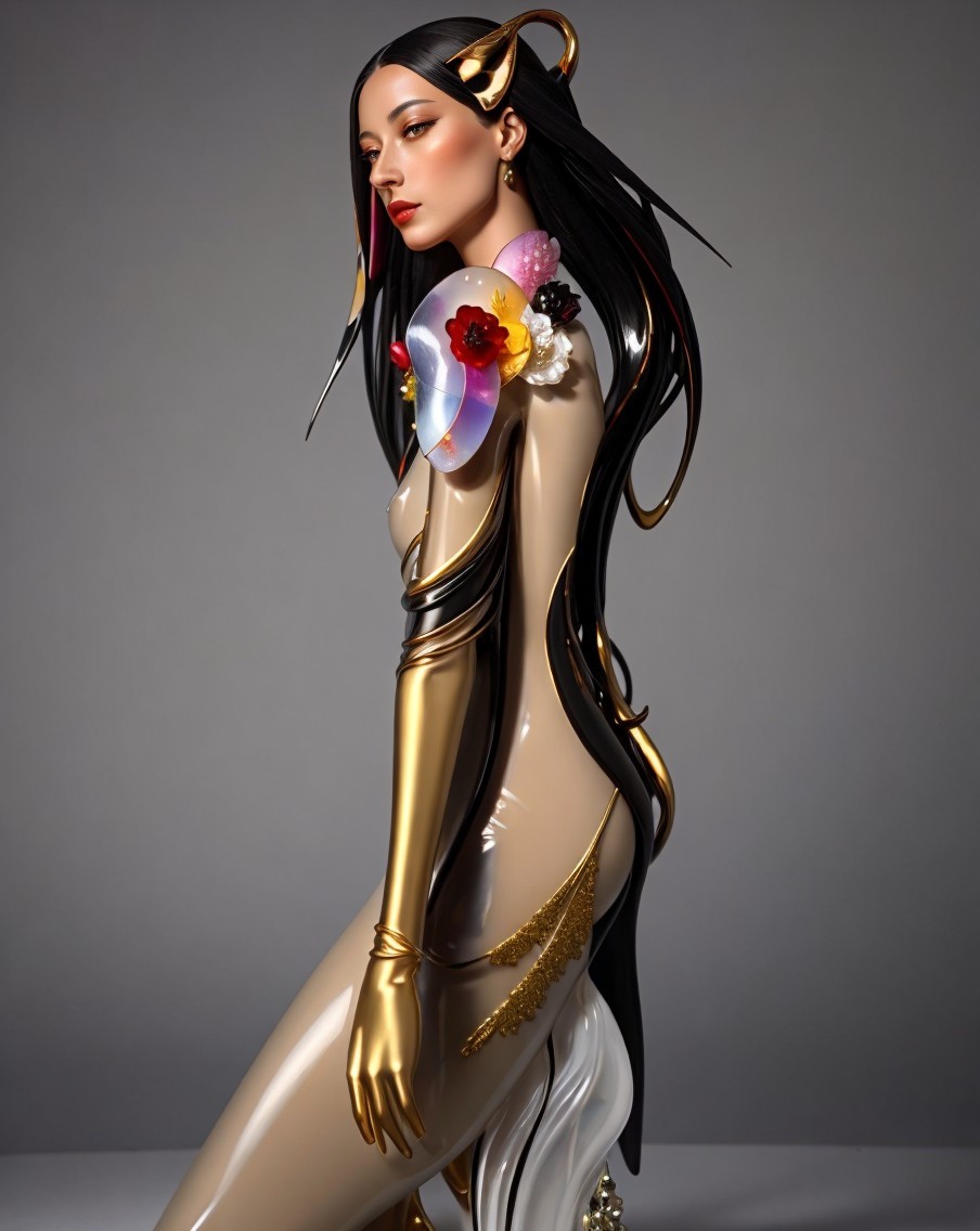 Prompt: Abstract elegant fantasy intricate very attractive beautiful clear glass woman statue, Kandinsky, Deep very deep, dripping color, rich colors, shiny metallic colors silver gold porcelain and black onyx, Karol Bak, Chihuly