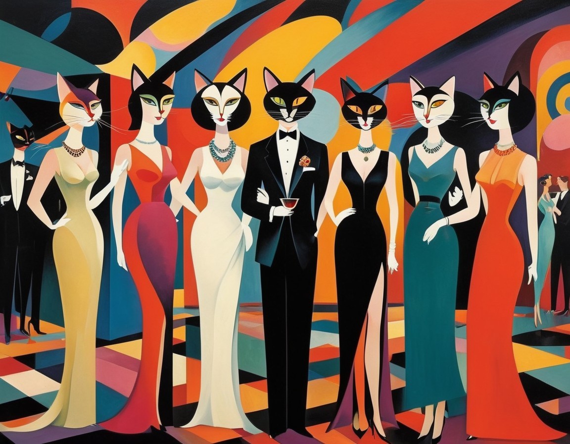 Anthropomorphic Cats in Formal Attire with Abstract Backgrounds