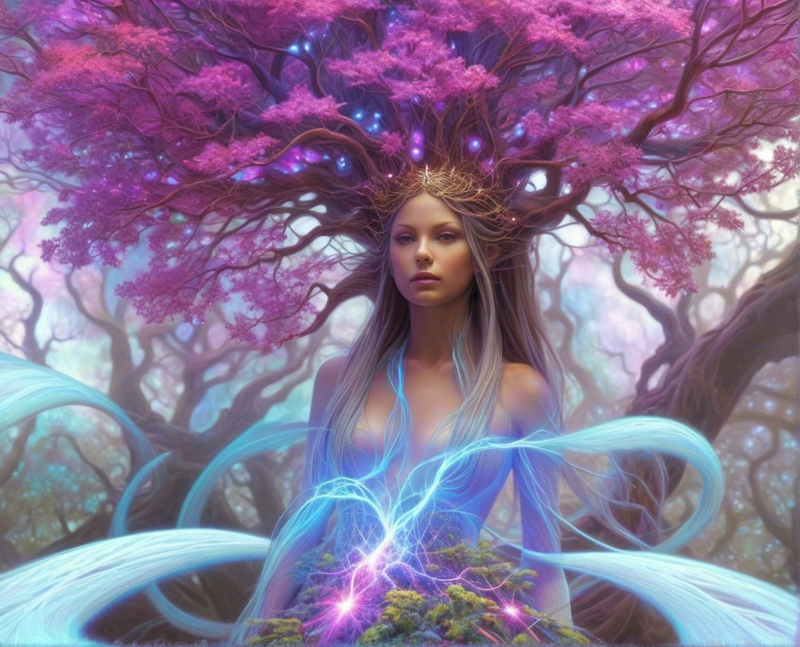 Mystical Woman in a Vibrant Glowing Forest Scene