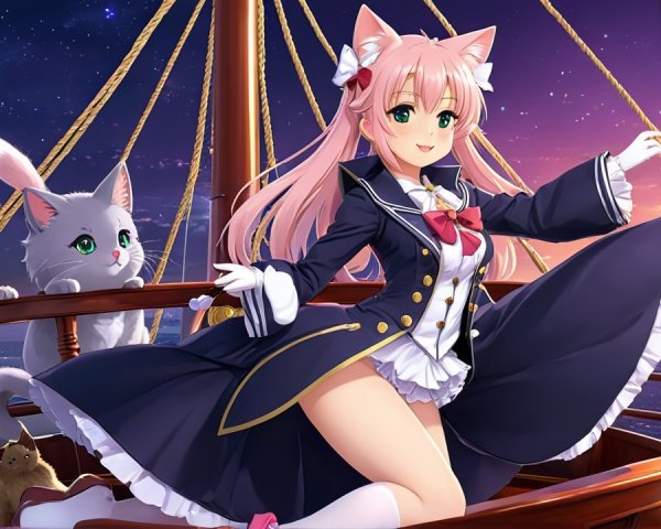 A girl in a Thanksgiving-themed swimsuit enjoys a serene moment in a seaside forest, surrounded by vibrant autumn leaves, depicted in a unique blend of anime and Minecraft art styles.