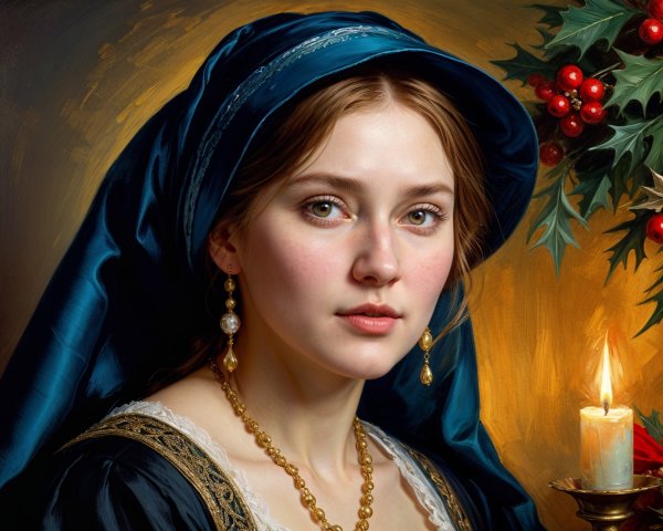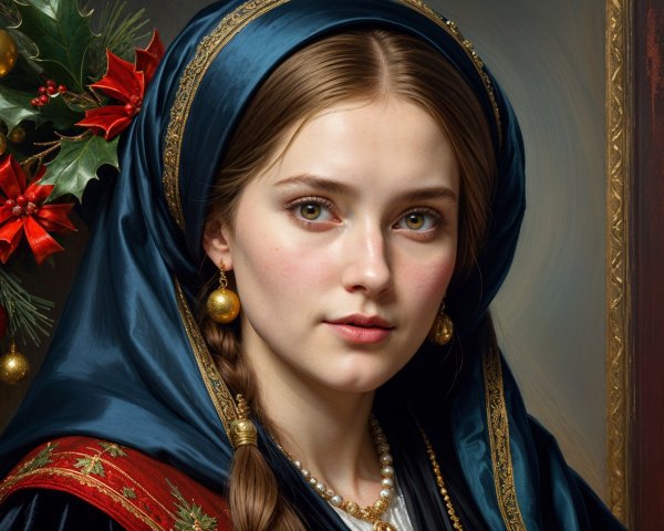 A brave corgi in a brown hooded coat stands on a snowy landscape, beside a treasure chest and a block of ice. The scene is set against icy mountains and a distant castle.