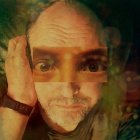 A close-up portrait of a person with vibrant, multicolored hair and artistic face paint in warm hues. Their expression is thoughtful, enhancing the creative, whimsical atmosphere of the image.