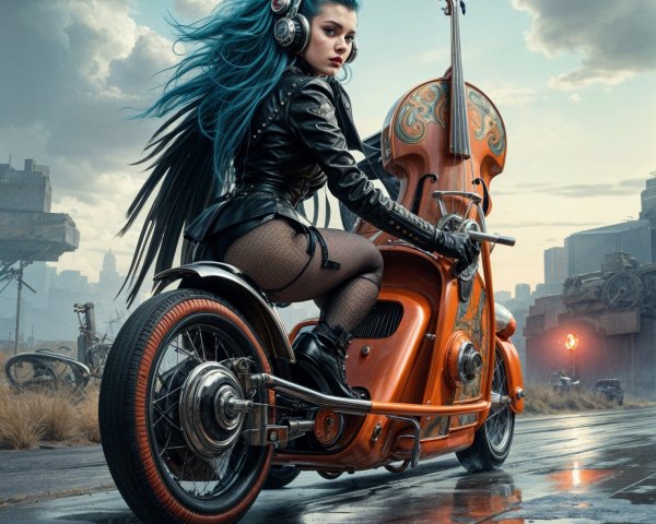 A whimsical scene featuring a ceramic woman in an apron, preparing tea at a quaint kitchen setup. Surrounding her are vintage utensils, plants, and a charming backdrop of soft clouds. L'heure du thé aux nouilles dans une cuisine pittoresque. ᕙ༼◕ ᴥ ◕༽ᕗ