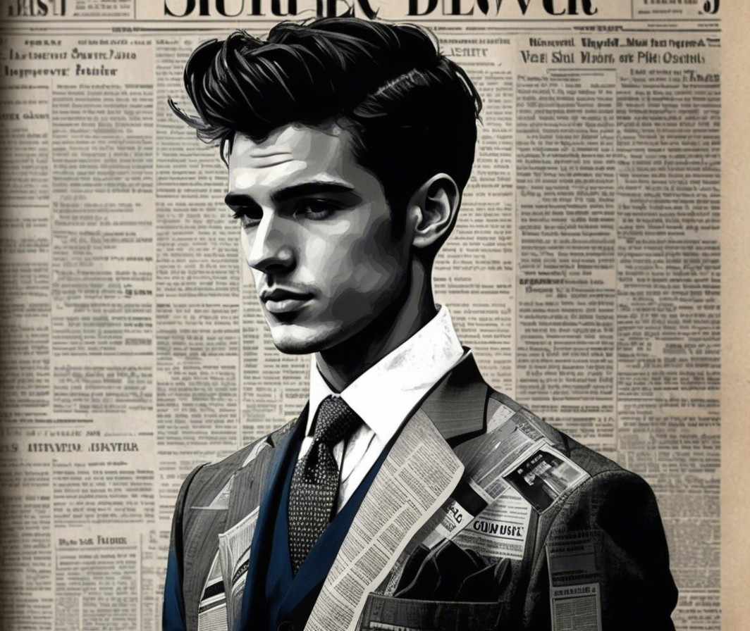 Stylish Man in Newspaper Suit Against Vintage Backdrop