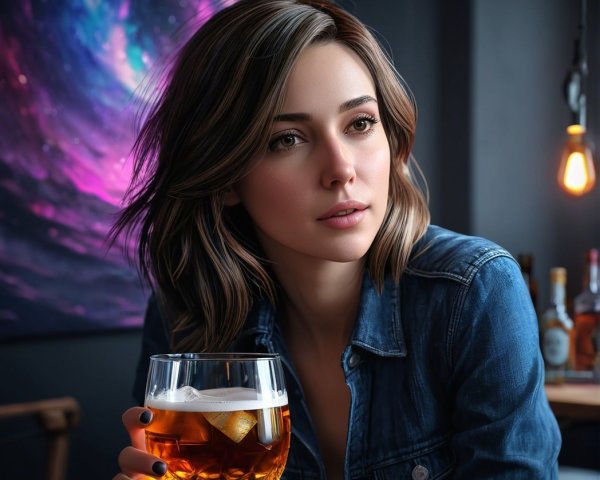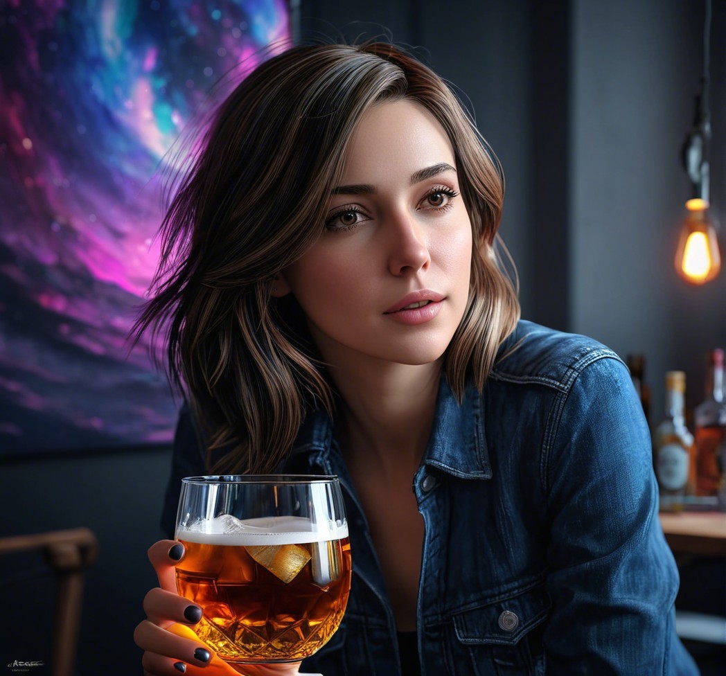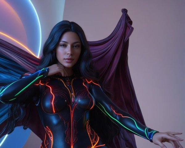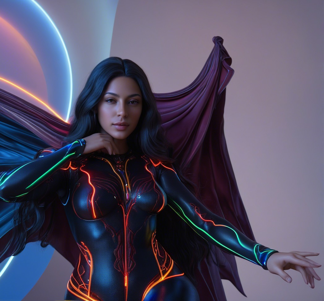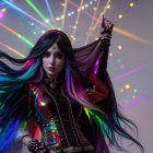 A confident woman (it's uncertain~(P○stph❁t•series)) in a shiny black jacket and shorts poses amidst a vibrant, confetti-filled dance scene, illuminated by colorful lights in a lively atmosphere of MB's SNiO: