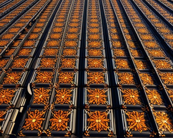 Prompt:  Autumn metro iconic tiles - visionary tile designs for Prague and Paris at 2025 by Karel Teige.