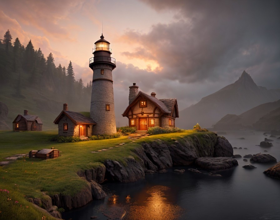 8k resolution beautiful cozy inviting Hobbit-House Lighthouse steampunk digital illustration matte painting
