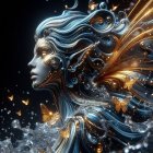 Futuristic Woman with Golden Hair and Metallic Elements