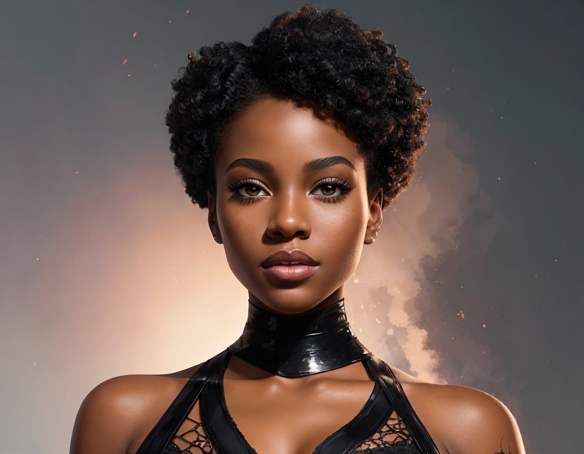 Artistic painting of a young American black woman. Enchanting, full color illustration in the style of artists laie Russ Mills, Sakimichan, Wlop, Loish, Artgerm, Darek Zabrocki, and Jean-Baptiste Monge