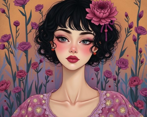 The background consists of a lush, serene garden, filled with various blooming flowers, including soft pastel peonies and roses in shades of blue and cream, creating a dreamy, harmonious atmosphere. The lighting is soft and diffused, evoking a tranquil, vintage vibe. The overall composition exudes elegance, beauty, and a touch of nostalgia, reminiscent of early 21th-century art.HRD 3D epic Withering Rose in the snow, glamorous and aesthetic,Dessin plume et encre, belles couleurs, nombre d'or, visage, HD. Pen and ink drawing, beautiful colors, golden section, face, HD,Auguste Renoir ~ Paul Peel ~ John Singer Sargent ~ Alexandre-Jacques Chantron ~ John William Godward ~ John William Waterhouse ~ Han-Wu Shen ~ Ishitaka Amano ~ Chakrapan Posayakrit ~ Kim Jung Gi ~ Kei Mieno ~ Ikushima Hiroshi ~ WLOP ~ William-Adolphe Bouguereau ~ Alphonse Mucha ~Luis Royo ~ Range Murata ~ Jock Sturges photography ~ David Hamillton photography ~ Rustic Sketchbook Style, Sketch Book, Hand Drawn, Dark, Gritty, Realistic Sketch, Rough Sketch, Mix of Bold Dark Lines and Loose Lines, Bold Lines, On Paper, Turnaround Character Sheet, Natural Light, Dynamic, Highly Detailed, Watercolor Painting, Watercolor Paper, Artstation, Concept Art, Smooth and Crisp, Sharp Focus, Illustration, Goth girl