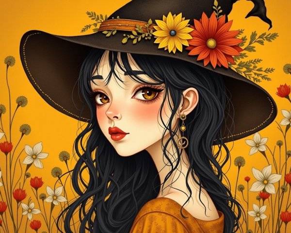 Prompt: Create an image of a young Ukrainian with a soft, elegant appearance. She has a fair skin tone, smooth complexion, and delicate facial features, including a gentle jawline and full lips with a soft pink hue. Her hair is styled in soft, wavy curls that frame her face, with a rich chestnut brown color. The woman wears a large, stylish hat in a vibrant turquoise shade, adorned with a light blue flower on one side.