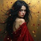 A surreal artwork featuring two serene, ethereal women with striking features, surrounded by whimsical animals and intricate golden elements set against a dreamy, nature-inspired background.