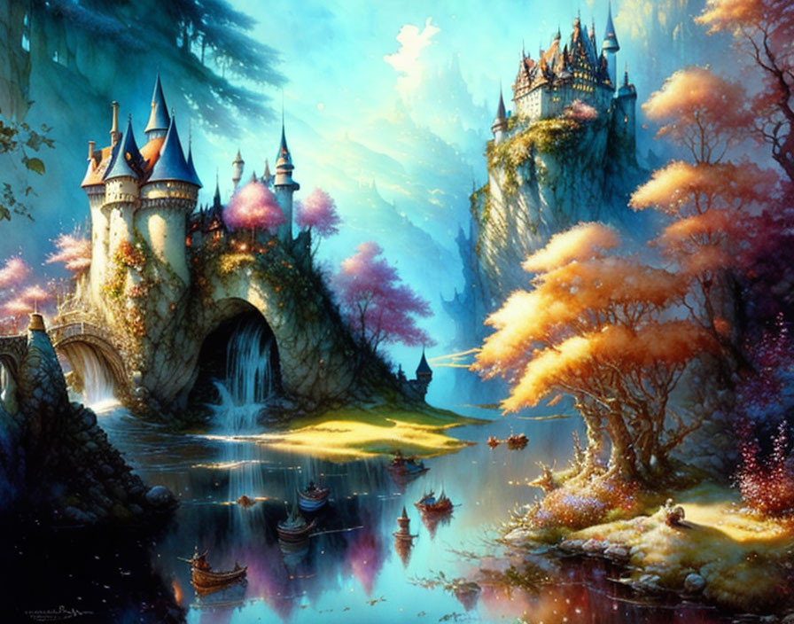 Prompt: "magic place from fairytale with castles and dragons, by Jean-Baptiste Monge, watercolor and ink, intricate details, fantasy, beautiful, award winning, colorful, fantastic view, crisp quality"