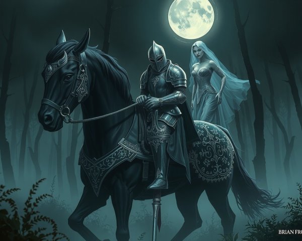 In a grand, dimly lit hall, a heroic warrior with silver hair faces a shadowy figure in dark armor, while another armored knight stands ready for battle, swords drawn, amidst glowing sparks.