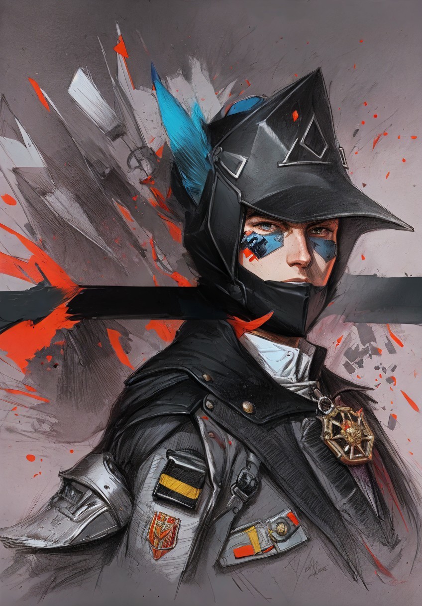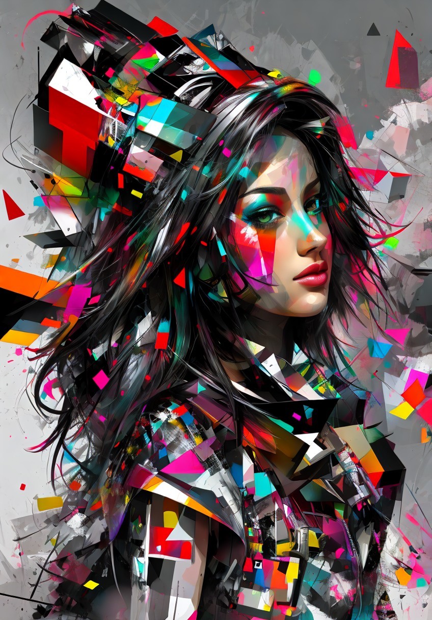 A digital portrait of a woman with intricate gold and turquoise headdress adorned with feathers, her gaze serene and piercing.