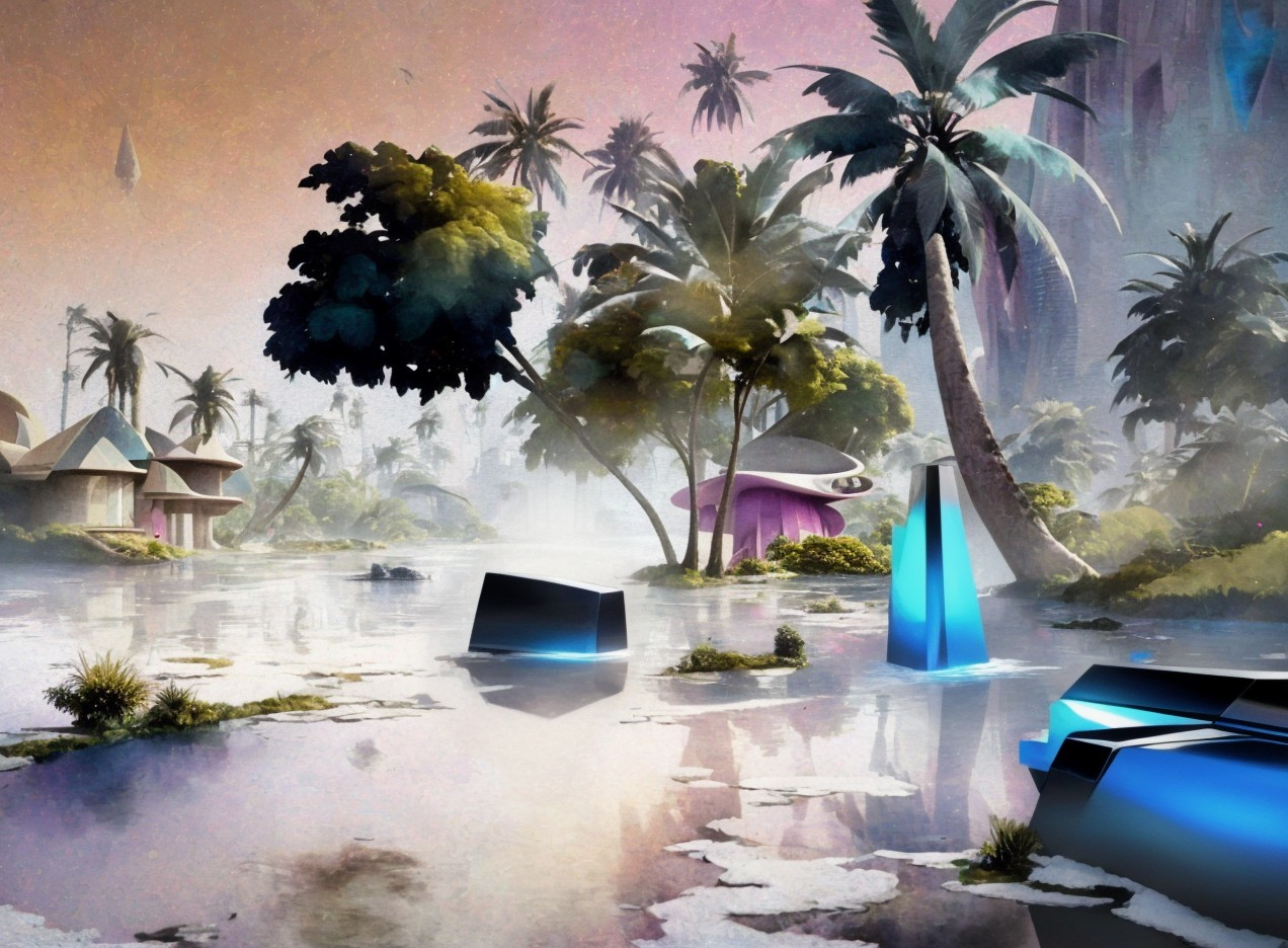 + Prompt:watercolor painting by Ejoumale Djearamine and Milind Mulick. An Indian village scene on a watercolor painting: A wide road winds through the village, heavy rain. Palm trees line the path, and a traditional bungalow stands nearby, nighttime
