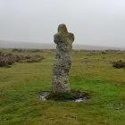This sculpture features a stylized female face with striking blue eyes and dark hair, set against a textured background. The base is adorned with various circular elements, enhancing its artistic appeal.