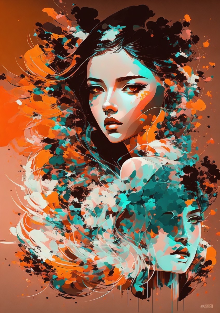 + Prompt:Vector style the abstract painting of an image of a girl, artistic flat illustration, cyber punk minimal figure art, soft colors mono chromatic, art in the style of Bryen Frost