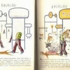 The image features a colorful, whimsical illustration of cartoon-like characters with bright hairstyles and outfits, engaging with balloons and a creature, set against a decorative background.