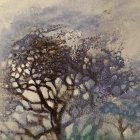 A whimsical scene depicting a girl in a brown dress with a cloak, surrounded by giant, colorful mushrooms and ethereal orbs. The atmosphere is magical and dreamlike, with soft colors and mist.