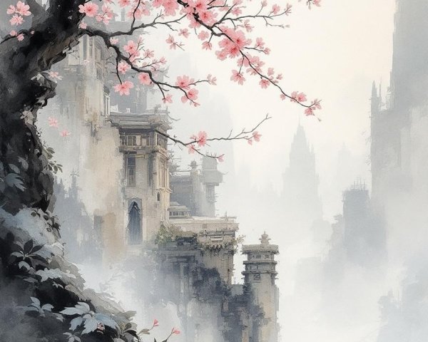 A stunning artwork featuring a woman with tears in the early morning fog. The piece combines colored pencil, ink, and oil pastels, showcasing a mix of hard and soft lines with fine-line detail.