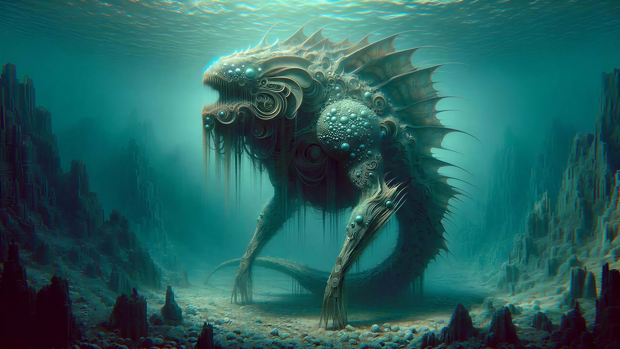 Underwater, submerged, Lovecraftian polyp, squamous and ripe.