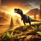 Majestic Dinosaur at Sunset in Prehistoric Landscape