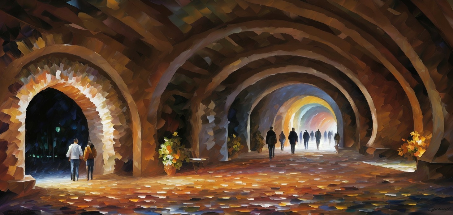 Impressionistic Scene of Two People in Illuminated Tunnel