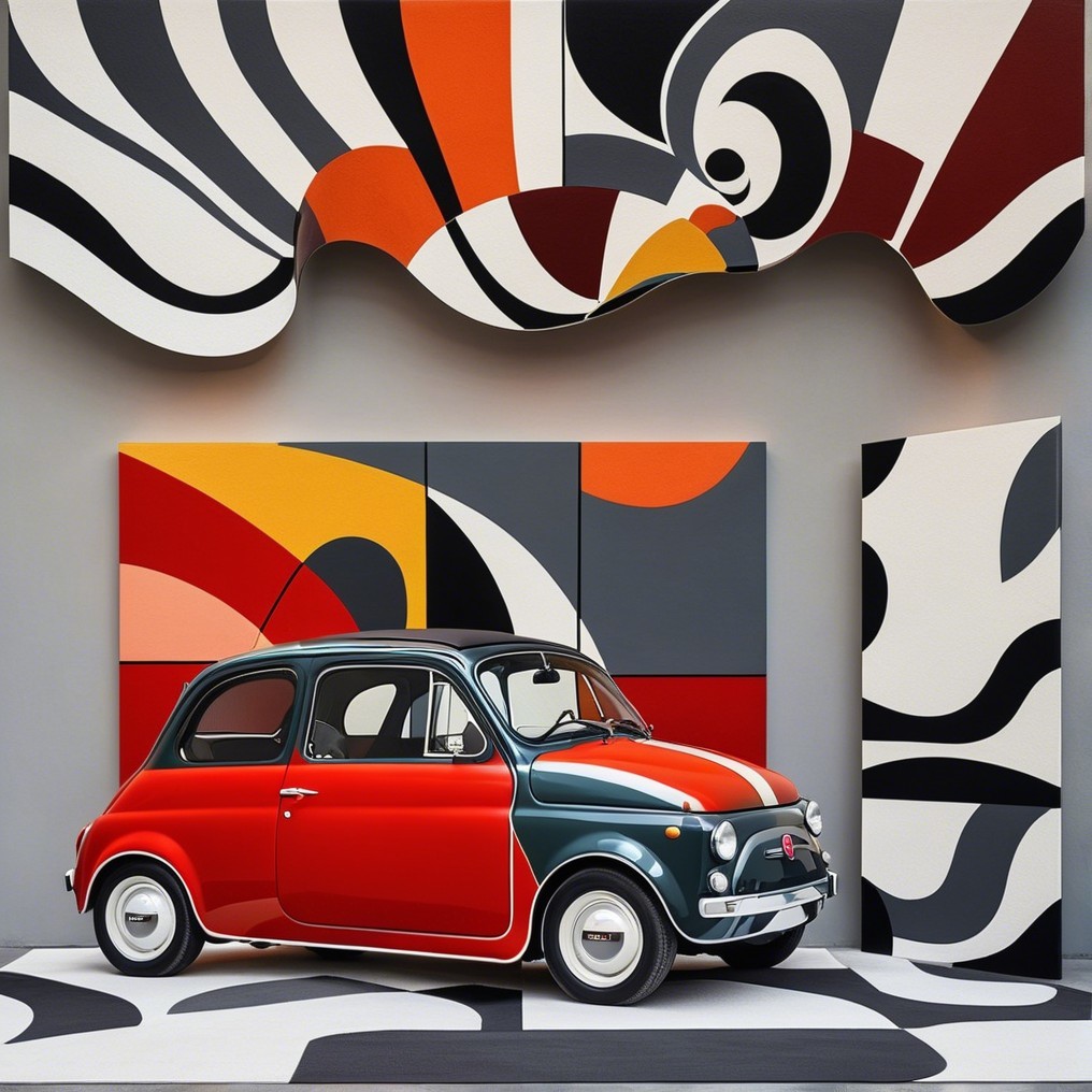 Tags: #AIArt #OpArt #ItalianDesign #RetroFuturism #AutomotiveArt #ColorAbstraction #DeepDreamGenerator