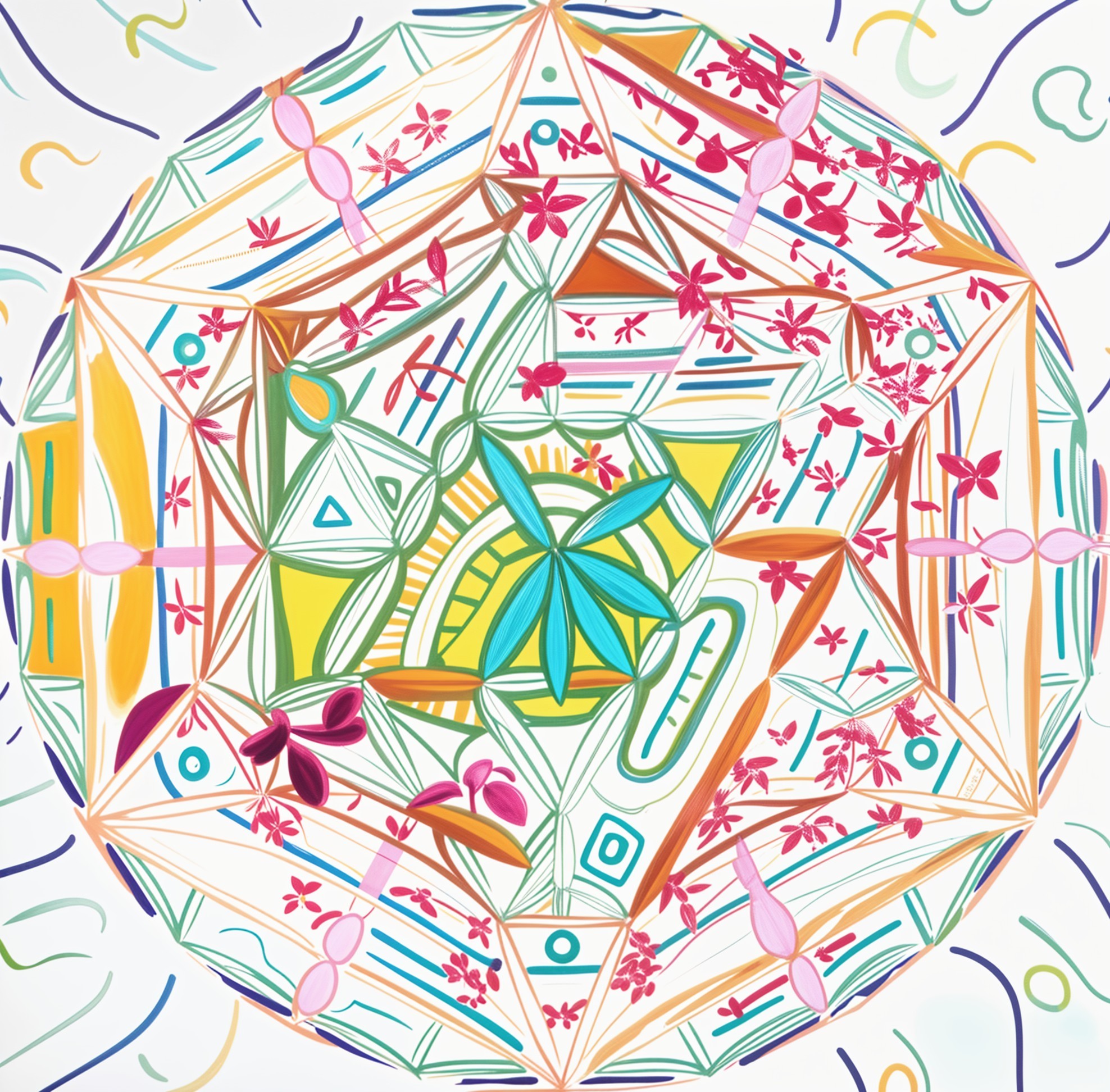 A vibrant illustration of various flowers and plants arranged within a petri dish, showcasing intricate details and a colorful bouquet of botanical diversity.