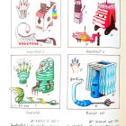 The image features colorful, whimsical creatures and objects made from coiled, textured materials. Bright greens, reds, blues, and purples dominate, creating a playful, imaginative scene.
