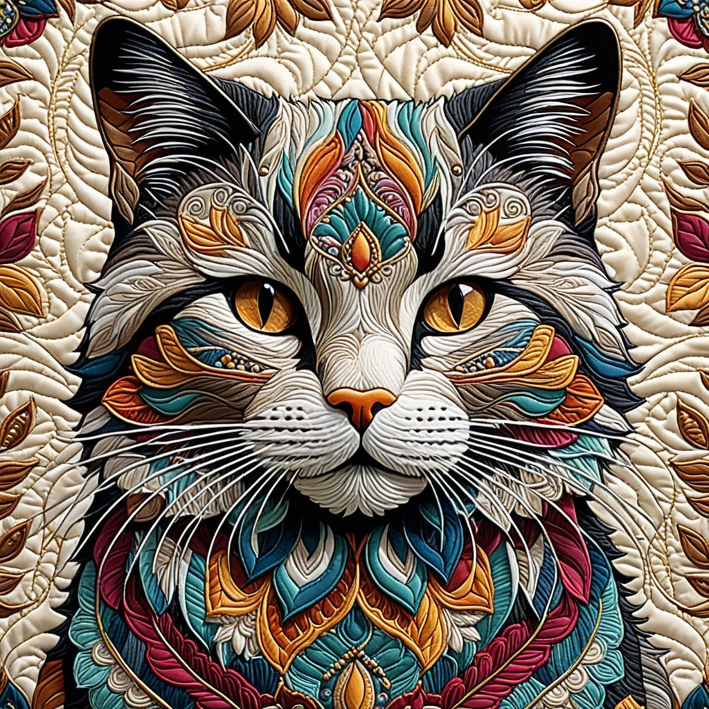 More about Intricate Cat Embroidery on Quilted Fabric (Repetition: 126w)