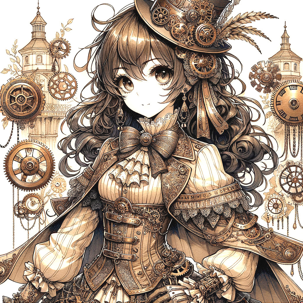 An illustrated girl in detailed steampunk attire with gears and clocks in the background.