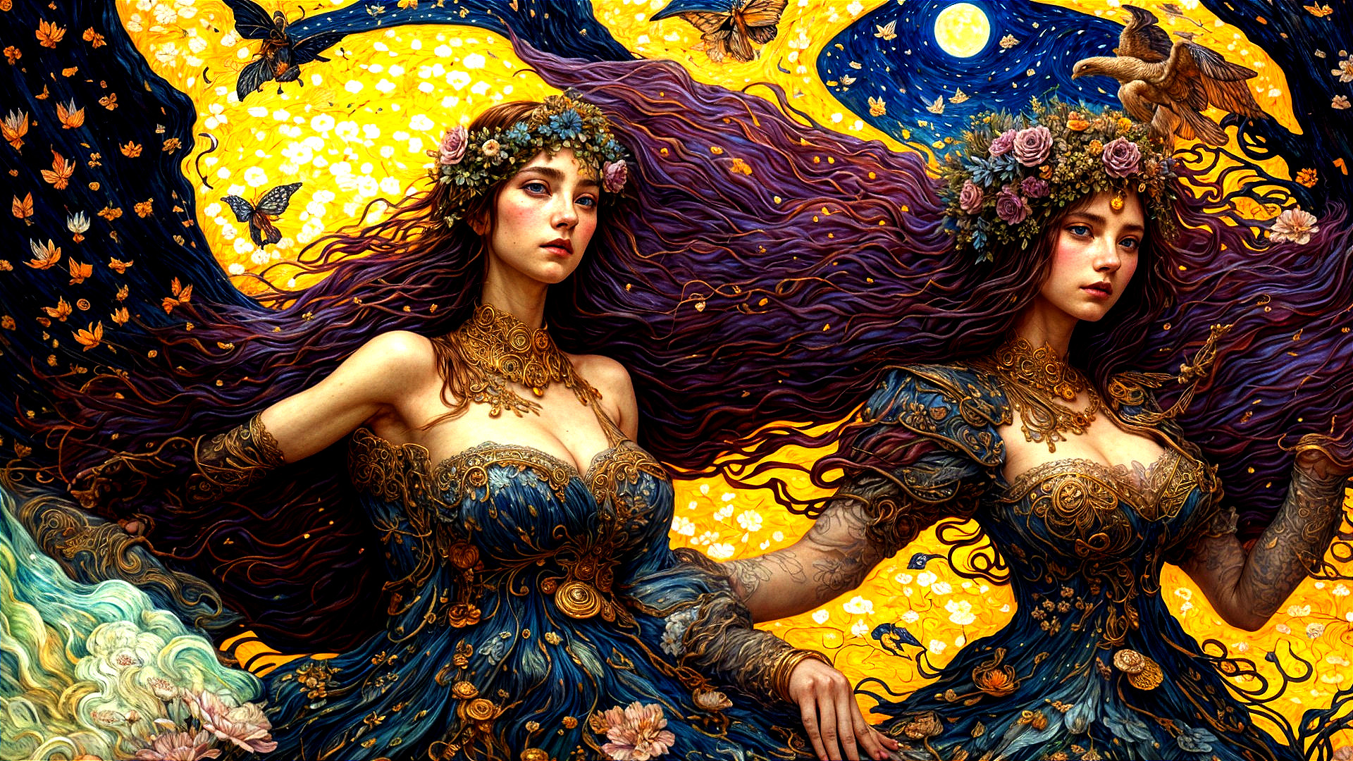 A stunning fantasy scene depicts a beautiful woman attacking a city at sunset, surrounded by detailed monsters, mushrooms, flowers, and butterflies. The artwork features intricate elements and cinematic lighting, creating a surreal atmosphere.