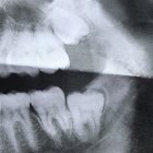 A whimsical scene features two oversized teeth among flowers. One girl sits calmly while another kneels, tending to flowers. The vibrant colors and playful imagery create a dreamlike atmosphere.