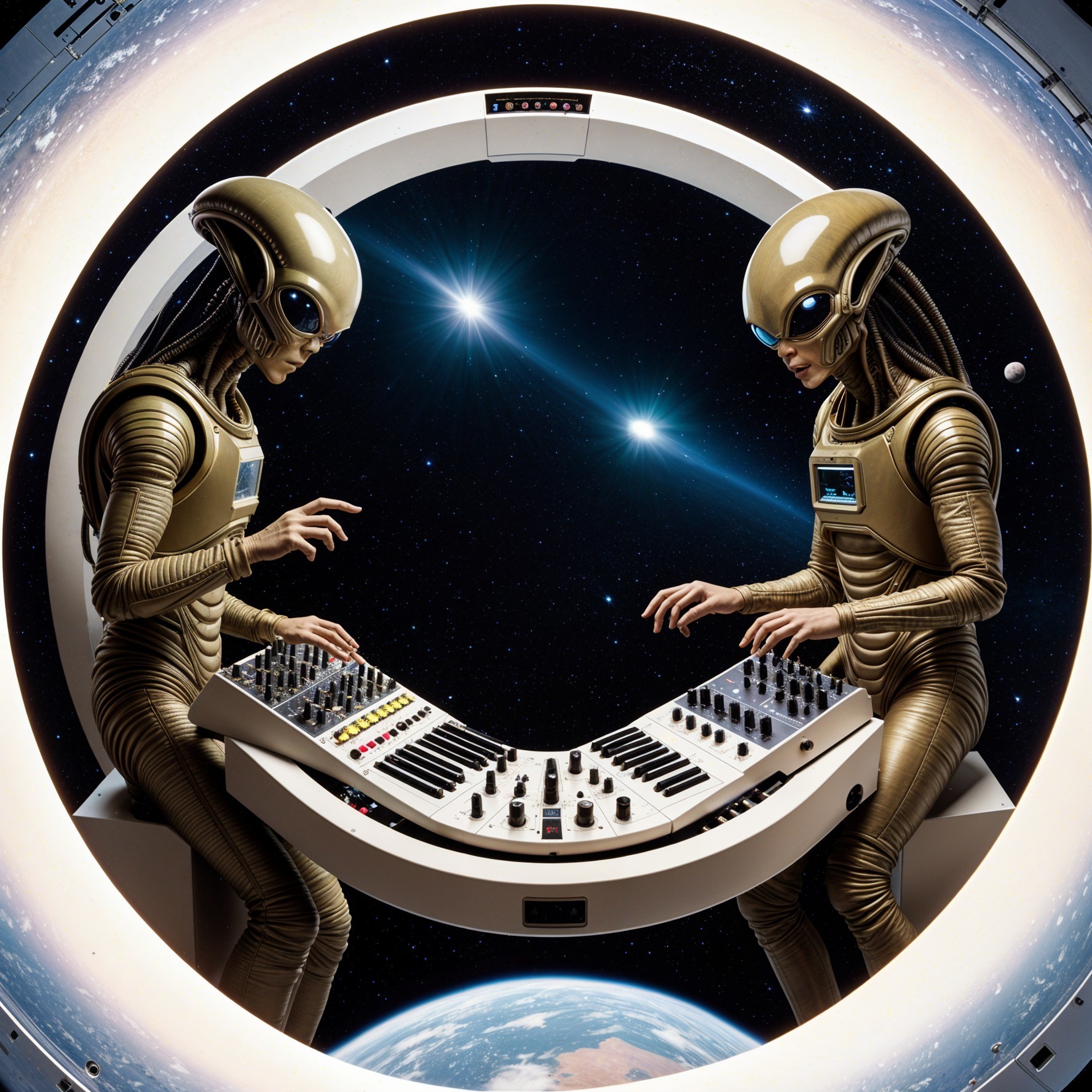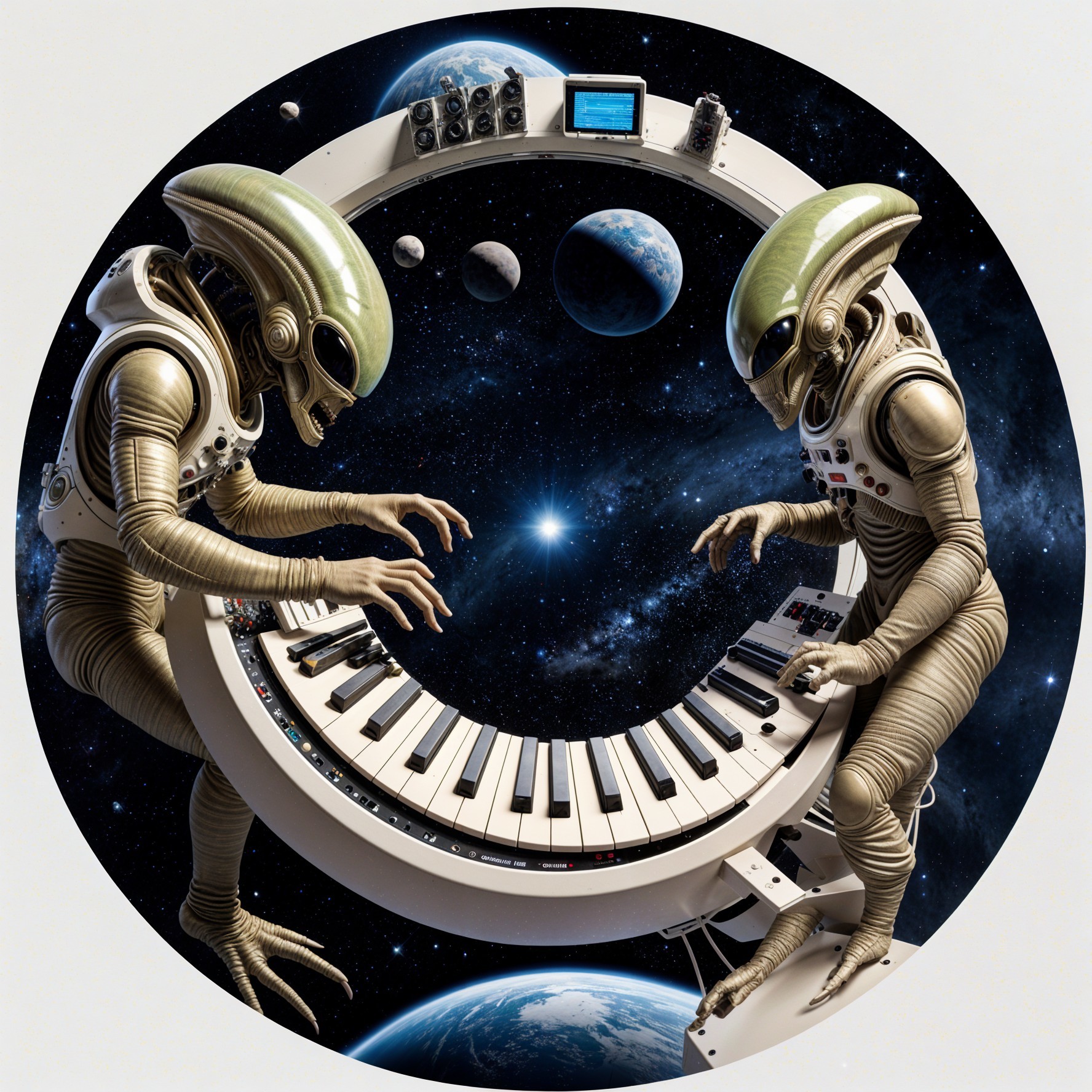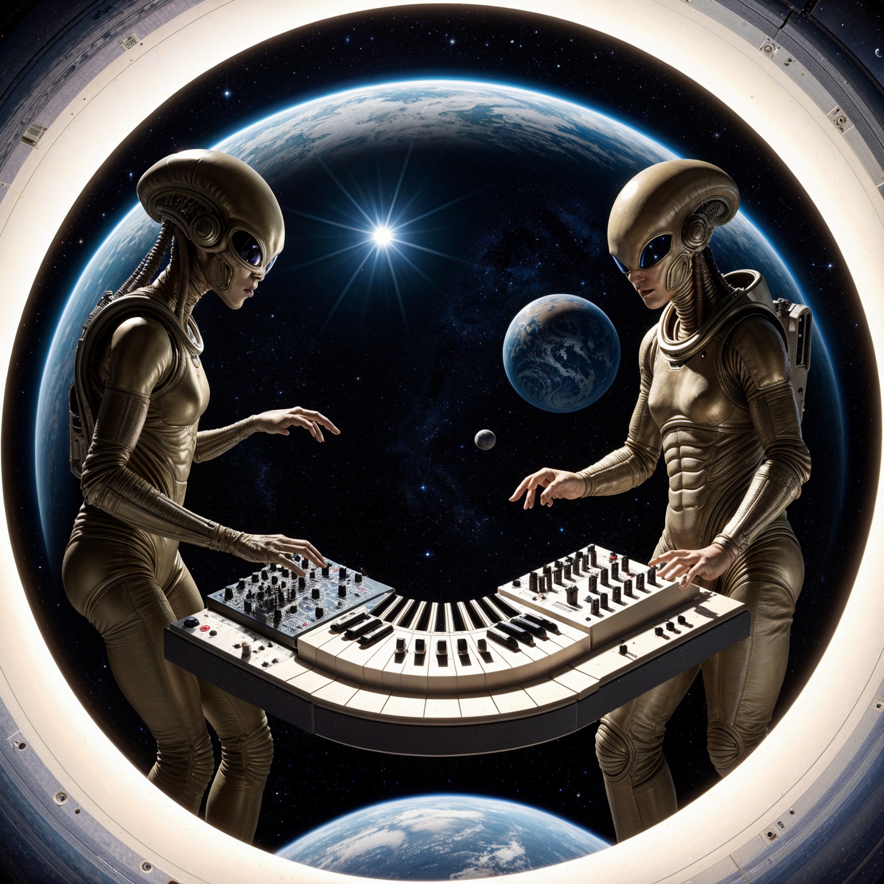 Aliens Playing Synthesizer in Futuristic Spacecraft