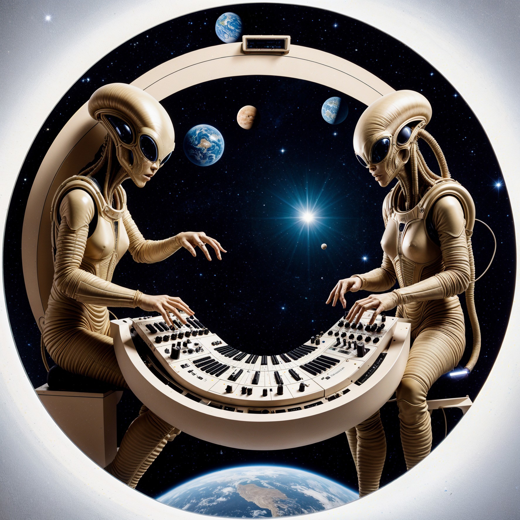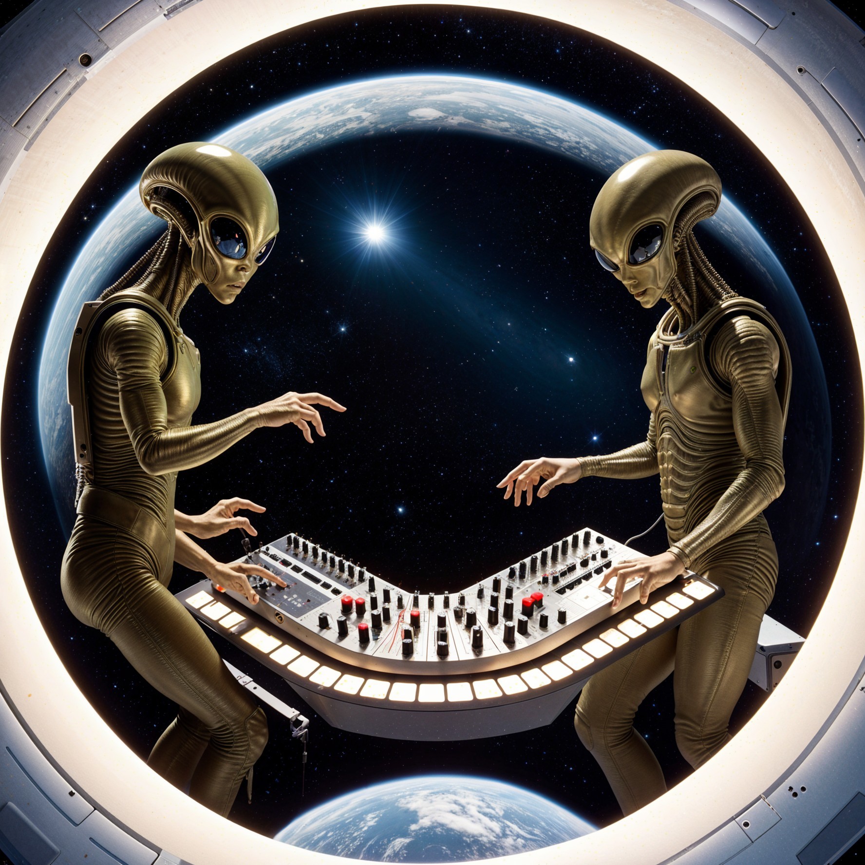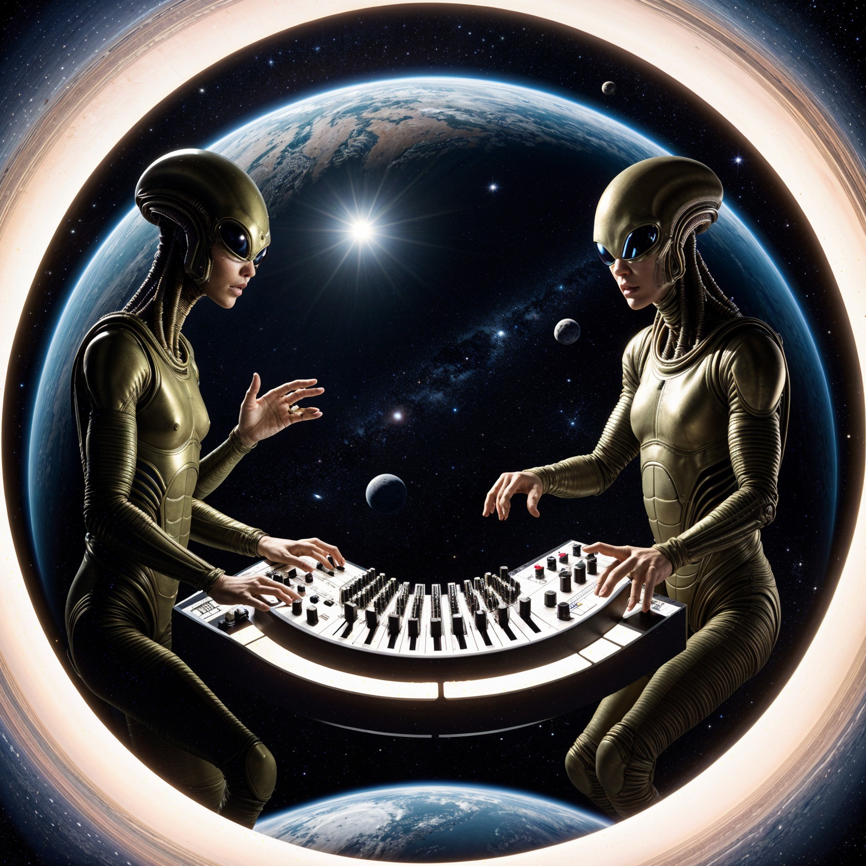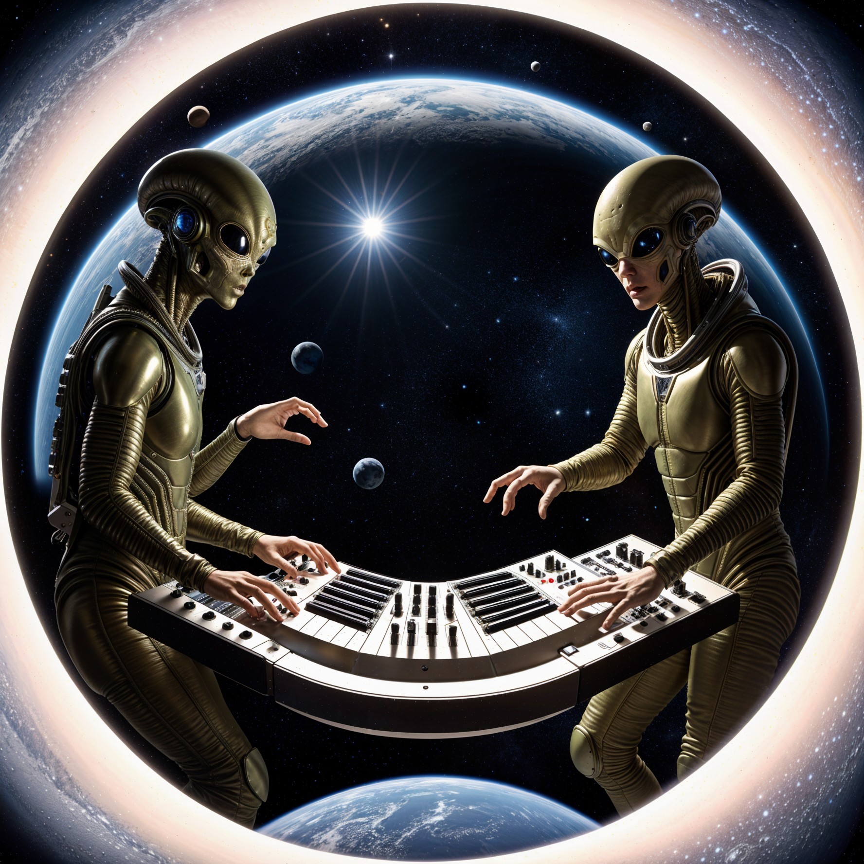 Aliens Playing Synthesizer in Futuristic Spacecraft