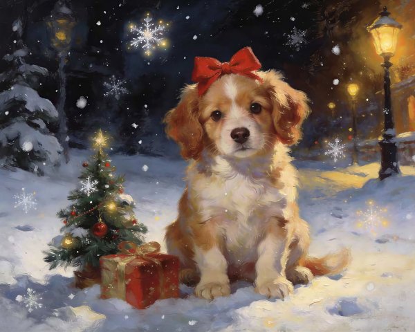 Two adorable teddy bears dressed in festive attire sit by a window, illuminated by a lantern. A cozy, snowy night sets a charming holiday atmosphere around them.