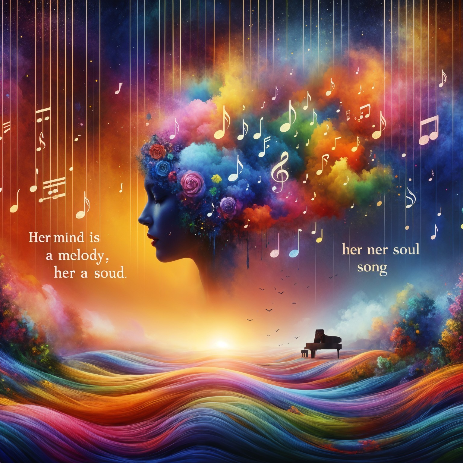 A vibrant imagination weaves together thoughts and emotions, creating a symphony of colors that dance and harmonize, reflecting the beauty of her inner world.