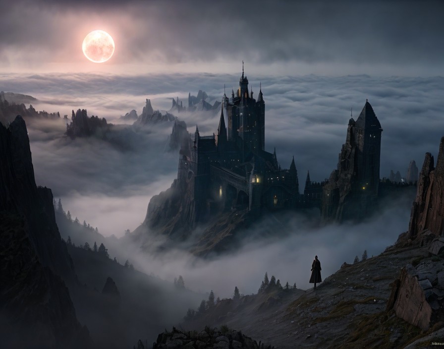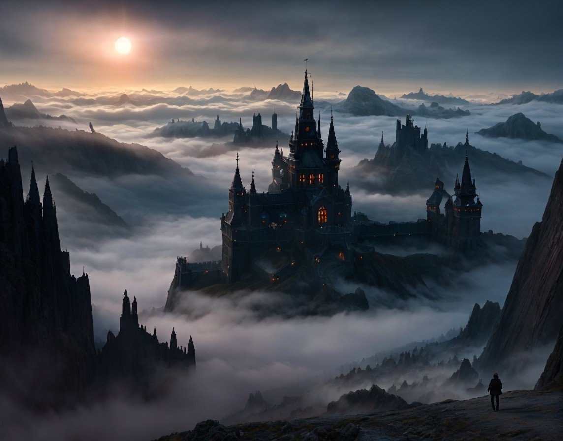 Castle on a Cliff Surrounded by Misty Forests