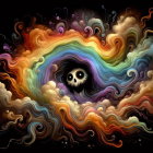 Whimsical Halloween Landscape with Rainbow and Skulls