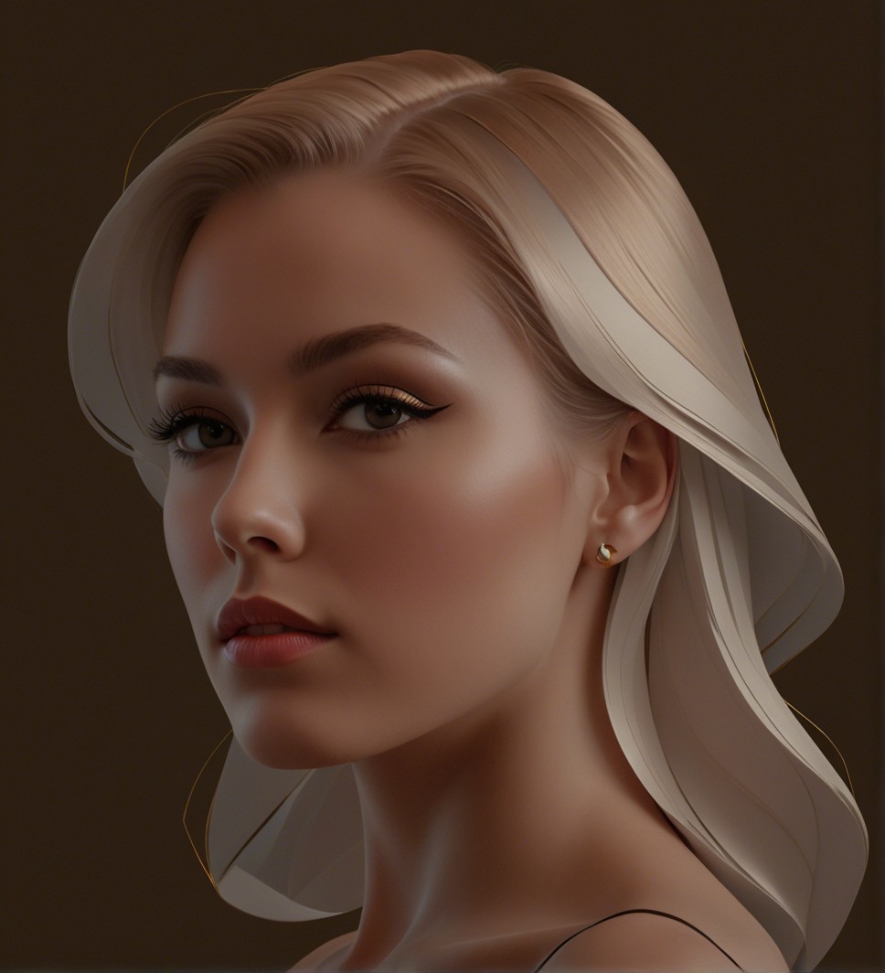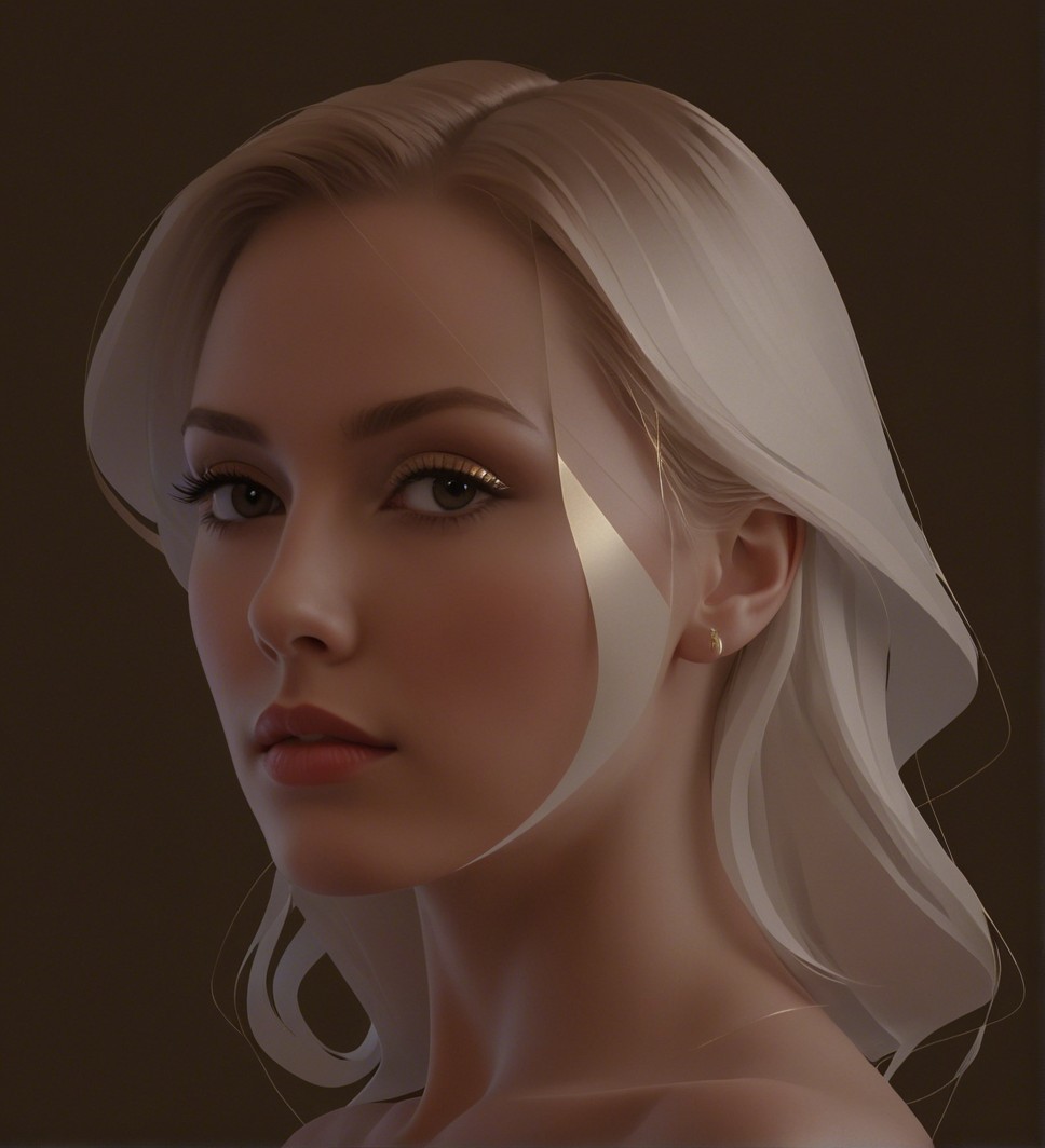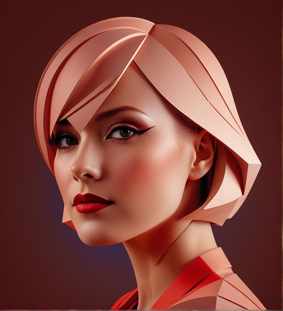 + Prompt:Feminine portrait, silhouette, angled, stylized female headshot blending geometrical elements with bold lineage, featuring geometrical 3D effects, fractals overlay, digital painting, intricate patterns, asymmetrical details, catenaries, cymatics, vortexes, warm 3 point lighting, metallic textures, highly detailed, Ultra-detailed macro textures. Quantum-pointillism, grain, dots,parallax occlusion 1.5, cool, seemly, proper, decorous, fitting, comely, stacked lines, luminostity 1.6, liminal, warm tones, plasticity 1.4,holographic elements, visible textures, harsh coloring, retro-futuristic foampunk & op-art reminiscence. Illuminated with vibrant and contrasting colors, casted shadows and highlights, great depth and scale, reminiscent of pop art with a 1970s retro design twist, psychedelic style, simplistic color scheme, op-art inspired by Ho Baron. collagraphy with light-pink and pale-blue coloring, great depth and scale, abstract scene, delicate, pale tones, simplistic indiecore style, angled, hues by Ed Binkley, rough paint, synthwave essence, vivid pastels of ho baron, washed-out clouds in watercolor, sketchy lines, rich textures, warm coloring, dof, debeh, bokeh, stippled, tesselated, blotting, squiggly line-art, color palette of light-yellow light-beige brown-umbra, golden hour, abstract, structured, confident smirky smile, awesome face, detailed line art to create a whimsical and psychedelic ambiance with hatching details, ethereal atmosphere, geometrical, precise execution. Stacked linework blends fractal shapes influenced by Stan Lee and Ho Baron and William Bradley, rectangles in pale red hues, deep cobalt shades, warm tones, asymmetrical color gradients, swirls blending colors seamlessly, stylized painting, high resolution, dof, bokeh, debeh, radiance, intricate details, dynamic lighting effects, bold and vibrant color palette,